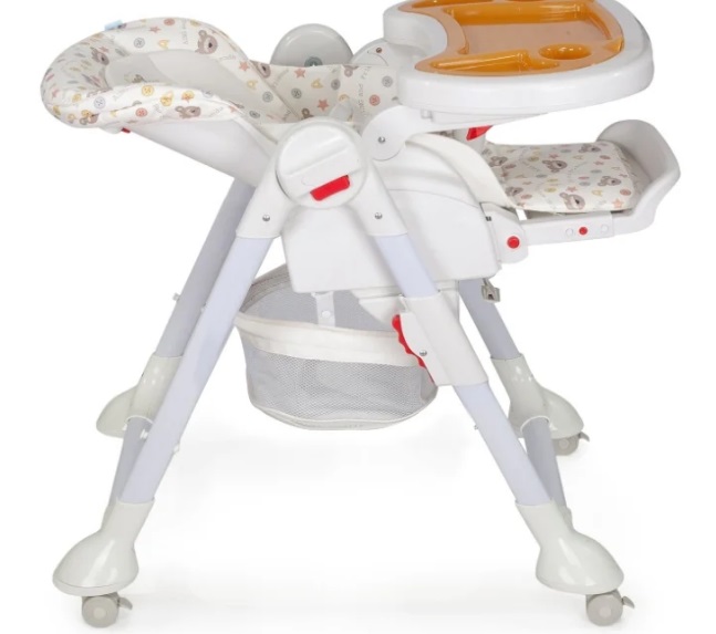 "Selby SH-252" a un grand plateau avec un plateau amovible. Le plateau a des évidements et un compartiment pour un verre. En raison de ces évidements, le bébé ne pourra pas brosser la plaque sur le sol. Le siège du produit est suffisamment large pour que le bébé puisse s'y installer confortablement. Il dispose également d'un harnais à 5 points pour plus de sécurité. La housse est faite d'un matériau lavable qui peut être lavé dans une machine à laver ou essuyé avec un chiffon humide. En dessous, il y a un maillage pour les jouets, qui peut être retiré si vous le souhaitez.
