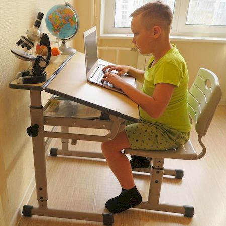 Le bureau et la chaise doivent être adaptés à la taille de l'enfant. Le dos doit être droit, les épaules droites, redressées, les bras pliés, doivent être allongés sur la table. Les pieds doivent toucher le sol et former un angle de 90 degrés. Toutes les 30 à 60 minutes, vous devez faire une pause dans les cours, vous lever de votre chaise, vous échauffer. Plus l'enfant est jeune, plus les pauses doivent être fréquentes et longues.