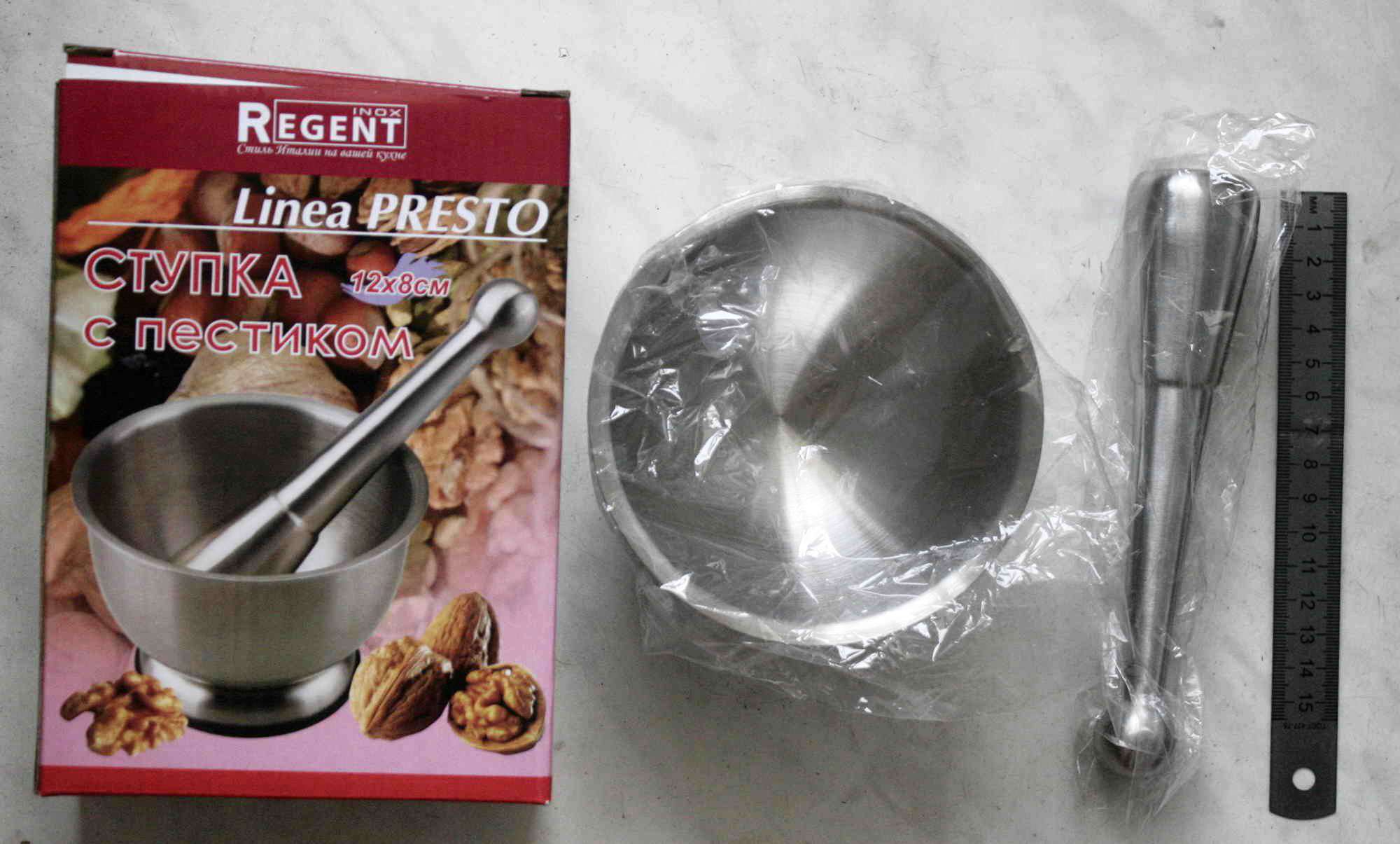 Le fabricant national du modèle 93-AC-PR-22 REGENT inox est la société italienne Presto. Fabriqué en acier inoxydable qui n'absorbe pas les odeurs et est facile à nettoyer. Le produit s'acquitte facilement de la tâche, c'est-à-dire du broyage de certains ingrédients, et a une durée de vie illimitée, surtout lorsqu'il est traité avec soin.Les formes du bol et du pilon sont conçues de manière à ce qu'elles soient confortables à tenir et ne glissent pas des mains.