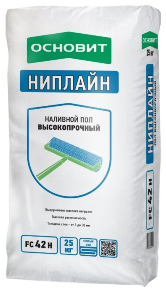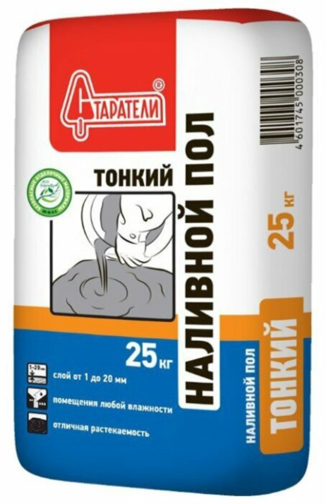 Remplissage de finition de haute qualité, qui peut être laissé à découvert, ou vous pouvez utiliser n'importe quelle option (tapis, linoléum, etc.). Peut être rempli d'une couche de 1-15 mm.