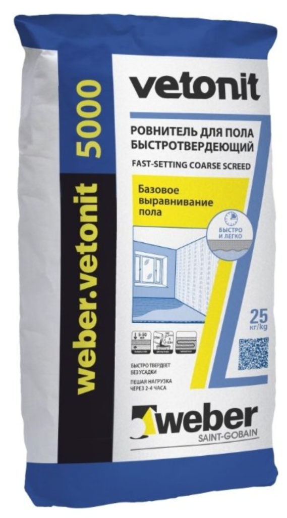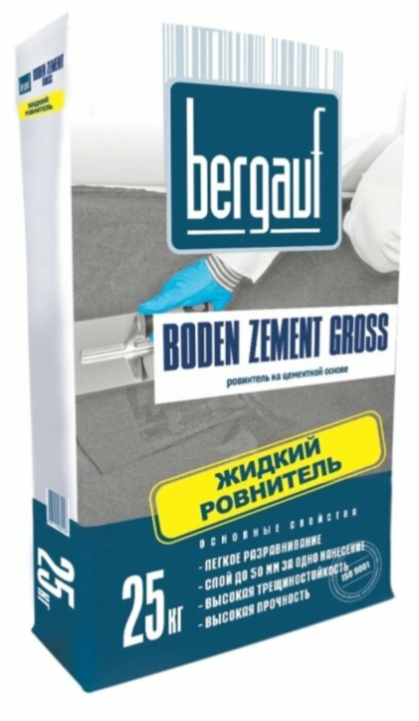 Un produit très populaire parmi la population en raison de son coût économique. Très simple d'utilisation, adapté au lissage des différences de hauteur de 2 à 10 cm, peut être utilisé comme base pour carrelage ou grès cérame, ainsi que linoléum, parquet ou moquette. Une fois préparée, la solution doit être utilisée dans les deux heures. Consommation de mélange pour 1 m². m est de 18 kg avec une épaisseur de 1 cm Plage de température - 5-30sur Celsius.