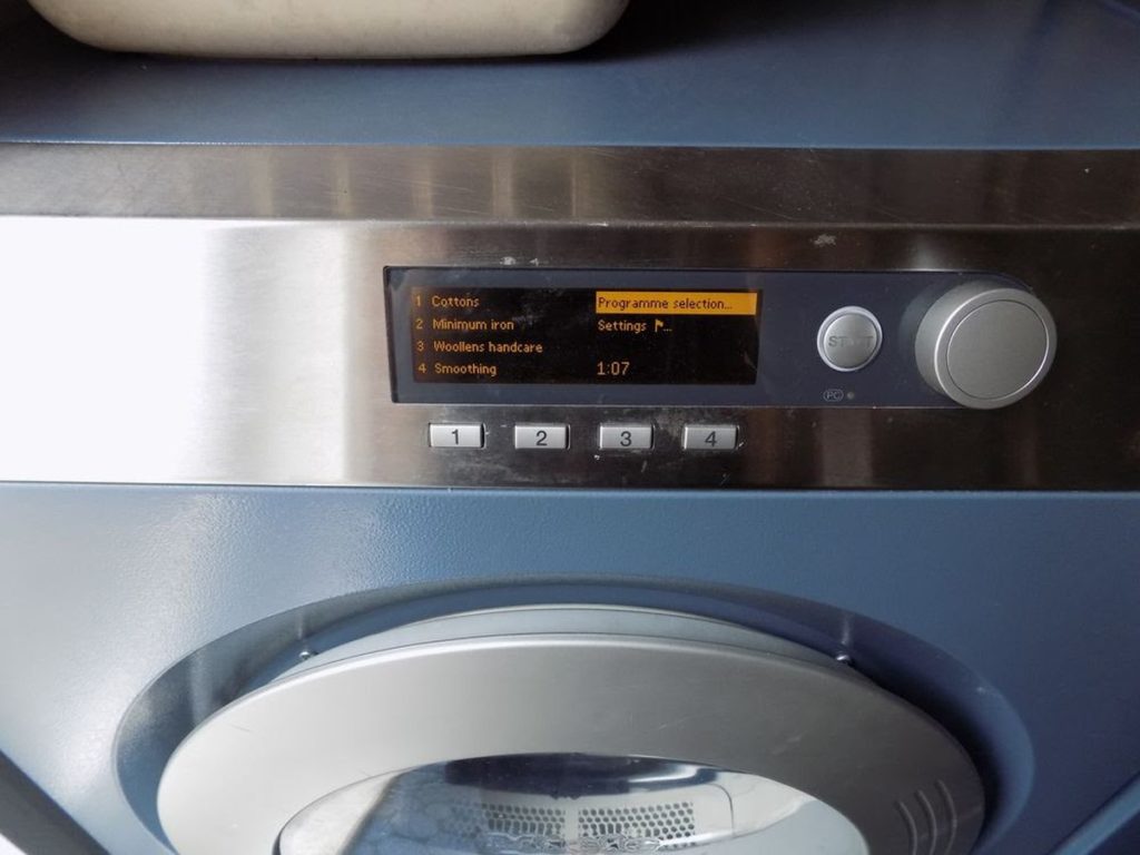 La prochaine place dans le classement est occupée par un sèche-linge - une machine Electrolux, sans quoi ce sera difficile pour les femmes au foyer.Il sèche absolument tous les types de matériaux et de tissus, y compris les grandes tailles et les volumes. Il y a aussi une fonction avec un compte à rebours dans le programme. Il est possible de régler le degré d'humidité souhaité, dans lequel certaines choses peuvent être suspendues à un cintre dans l'armoire, tandis que d'autres doivent être repassées. Contrôlé par une légère pression sur les boutons tactiles.