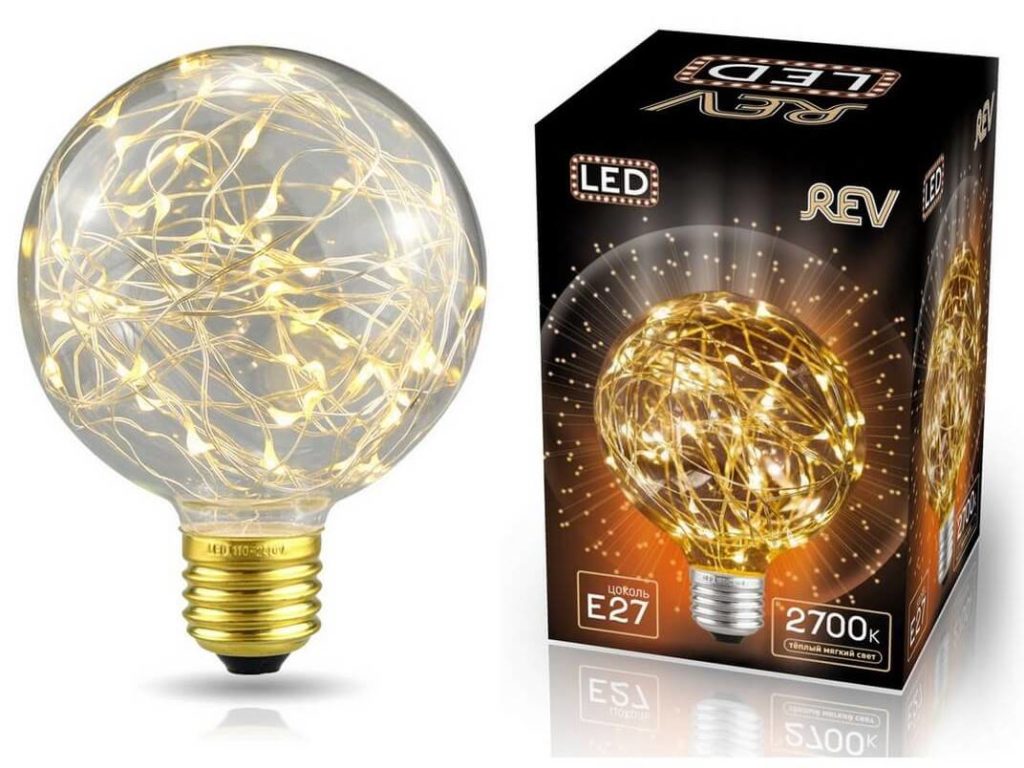 Une ampoule de haute qualité d'un fabricant national se distingue par de bonnes performances et une utilisation universelle. La température de couleur maximale est de 2700 K. Il est protégé de la poussière et de l'humidité, il est donc souvent utilisé non seulement à l'intérieur, mais aussi à l'extérieur.