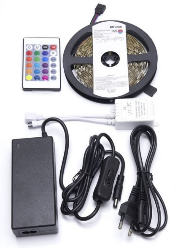 Un tel modèle peut être utilisé comme élément de décor ou comme contre-jour pour vitrines et comptoirs. Le produit a une longueur de 5 mètres. La bande émet une lumière rouge, verte et bleue. Le kit comprend un pilote.La base autocollante vous permet de monter le produit sur n'importe quelle surface. Le coût recommandé pour les chaînes de magasins est de 3500 roubles.