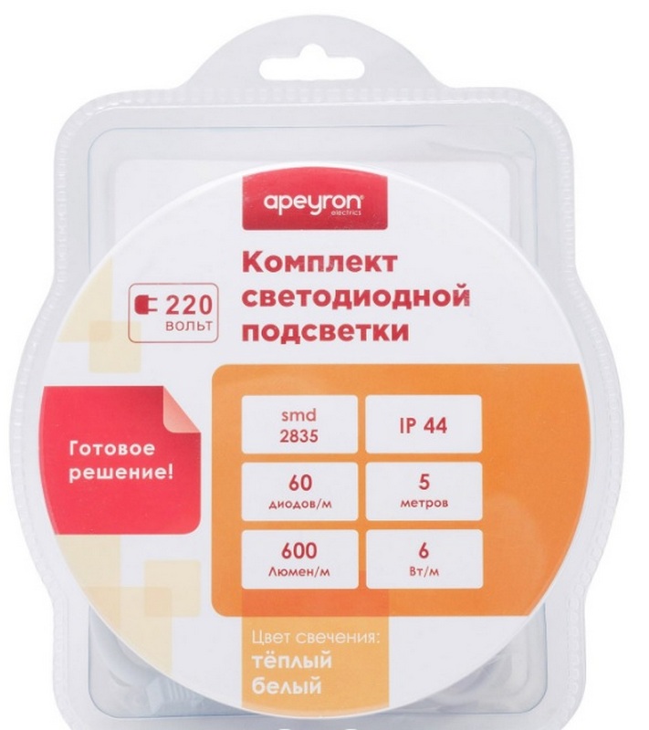 Ce produit est une solution entièrement clé en main - il ne s'écoulera pas plus de 2 minutes entre le moment du déballage et le début des travaux. Il y a environ 5 mètres dans la bande, elle a 60 LED et elle brille très chaleureusement et doucement.La lumière est parfaitement répartie dans tout l'espace environnant. Il est livré avec un bloc compatible avec d'autres produits similaires. Il coupe très bien, pour cela il a des marques dessus, selon lesquelles il faut le faire. De plus, il est enduit de mastic silicone à la jonction du cordon d'alimentation et de la prise - l'eau n'en a certainement pas peur. Le coût recommandé pour les chaînes de magasins est de 1700 roubles.
