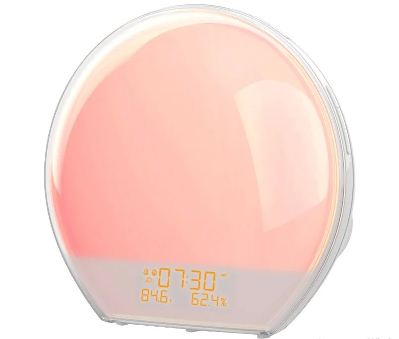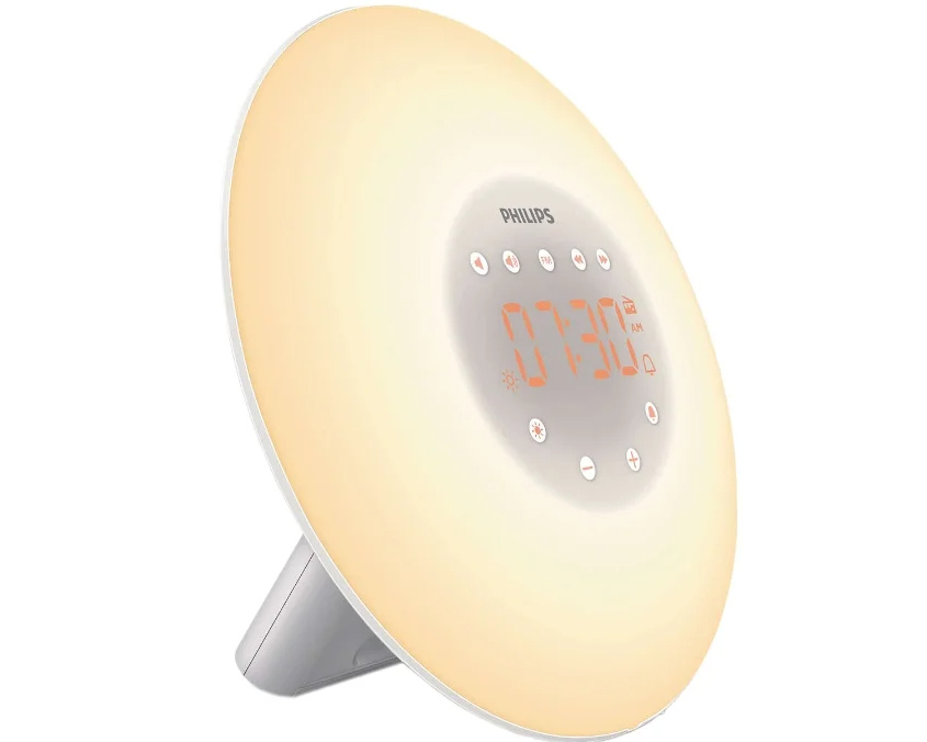 C'est un réveil qui simule le lever du soleil. La préparation au réveil commence en 30 minutes - la luminosité augmente progressivement. Un bip à l'heure spécifiée termine le processus. L'augmentation de l'intensité du flux lumineux permet un réveil facile. Il existe des conditions similaires au naturel - lorsque les gens se réveillent des rayons de lumière du matin.