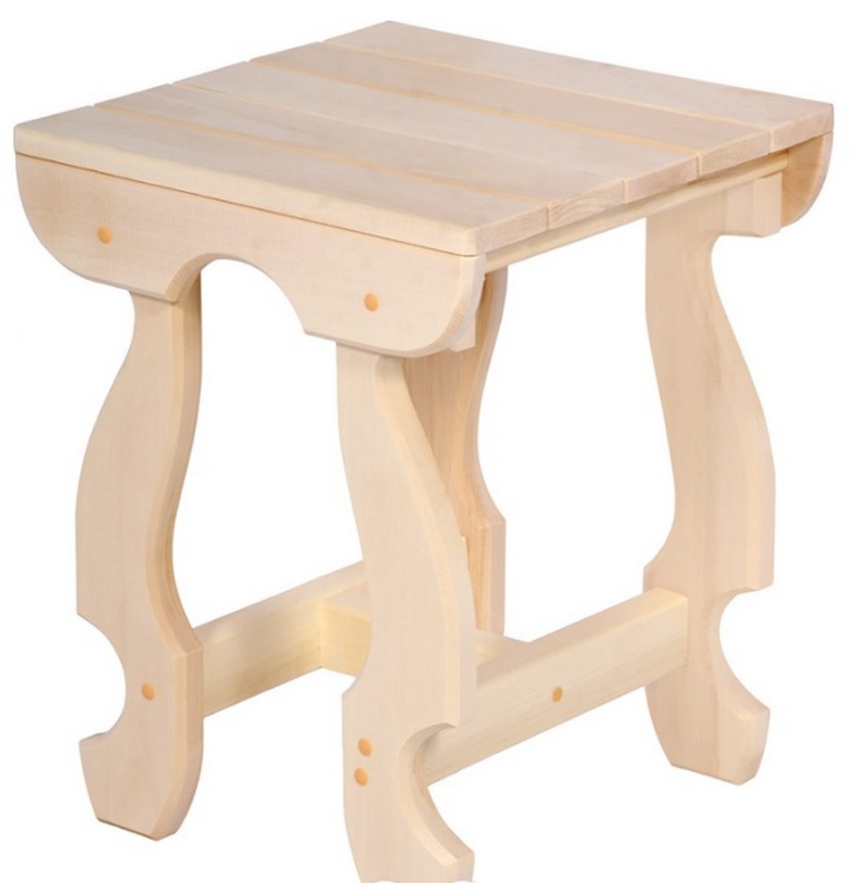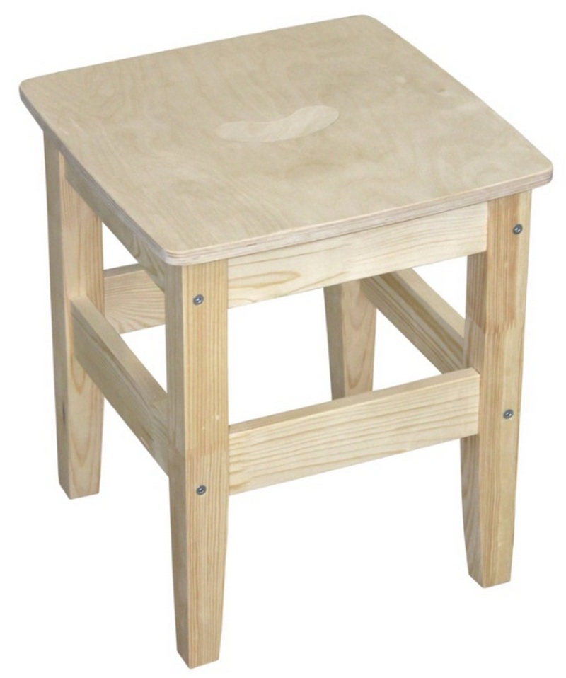 Cet échantillon a des formes traditionnelles. Peut être facilement transporté grâce au trou dans le siège. Le produit est une solution idéale pour la cuisine, pour les besoins domestiques dans le jardin, le potager, l'atelier, etc. Le produit est non peint. Type de bois - pin, dimensions - 330 x 330 x 465 millimètres, charge maximale, kg - 250. Le coût recommandé pour les chaînes de vente au détail est de 1544 roubles.
