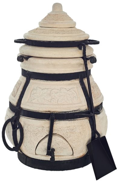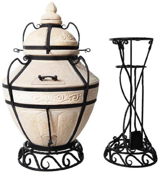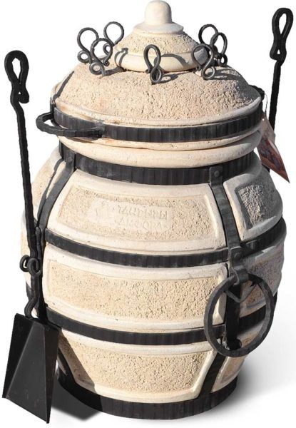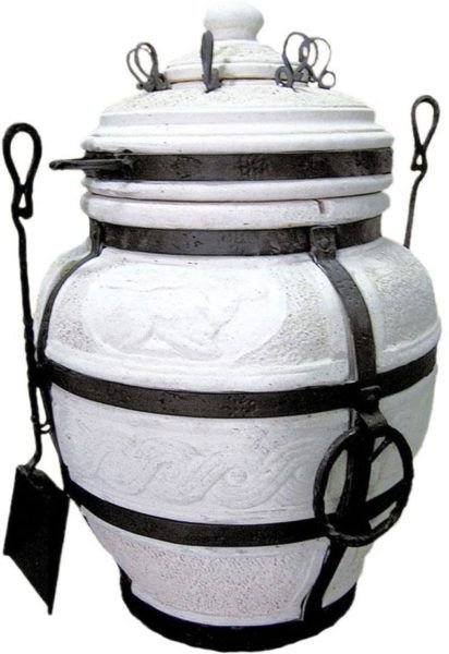 À la 4ème place - tandoor 84 cm de haut, 53 cm de large, a un petit poids - seulement 30 kg. Le produit est en métal, les aliments y sont cuits deux fois plus vite que sur un feu ouvert. La conception unique chauffe rapidement grâce à l'utilisation de charbon de bois. Il est chargé à travers un volet sur le côté, incendié et attend que le bois de chauffage se transforme en charbon, réchauffant les murs. Les technologies modernes ont changé l'apparence, mais ont laissé le principe de fonctionnement du tandoor. Le goût et l'utilité des plats cuisinés au pilav - tandoor ne sont pas inférieurs aux poêles en céramique.