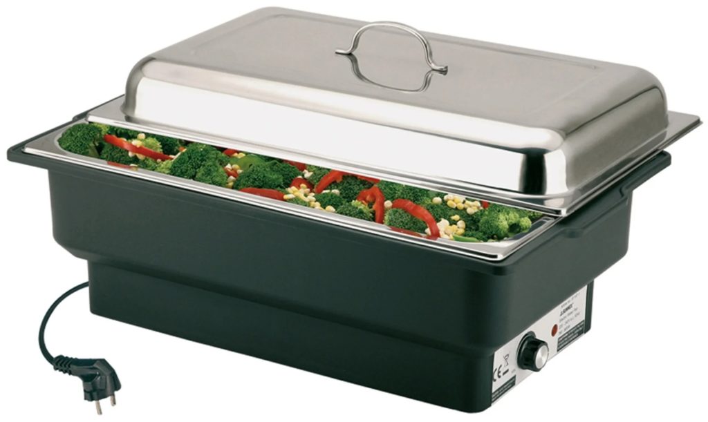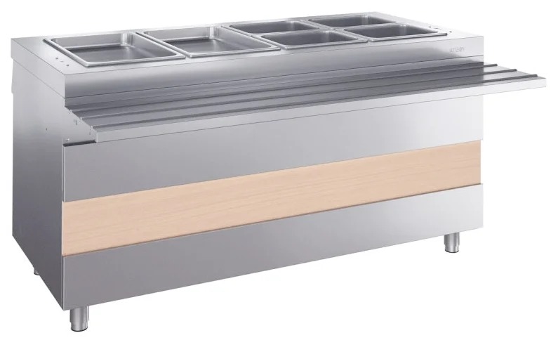 Le fonctionnement des barres thermiques est assuré par l'eau, qui est régulièrement chauffée par des éléments chauffants, ce qui garantit la température souhaitée tout au long de la journée. Il existe également des options avec la possibilité de chauffer les récipients utilisés eux-mêmes à l'aide de brûleurs à alcool.