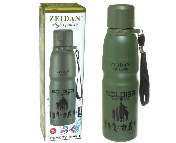 La bouteille isotherme est idéale pour les hommes. L'apparence brutale et le matériau de haute qualité vous permettent d'utiliser le modèle à la fois pendant l'entraînement et la chasse. Une sangle de transport spéciale vous permet de libérer vos mains. Le couvercle peut être utilisé comme une tasse. Le bouchon est attaché à la bouteille avec une sangle, il n'y a donc pas lieu de s'inquiéter de perdre la partie supérieure. Le produit garde la température jusqu'à 12 heures. L'acier ne noircit pas, il durera donc longtemps sans perdre ses caractéristiques.