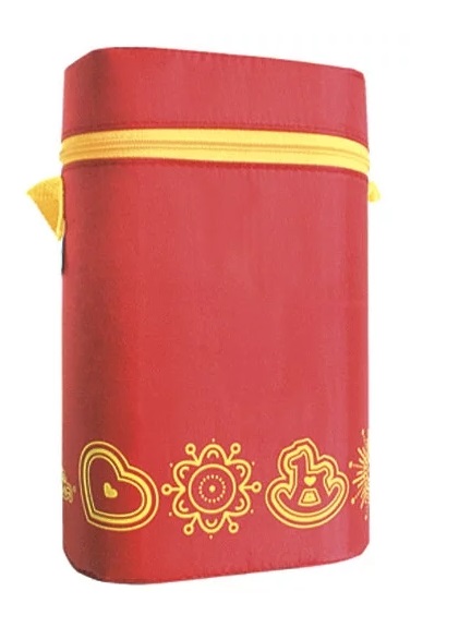 Un tel conteneur thermique peut accueillir deux bouteilles d'un volume de 350 à 450 ml. Pour la production de ce modèle, un tissu et une mousse résistants à l'usure sont utilisés. Pour un transport facile, il y a une poignée en tissu qui ne glisse pas dans la main. La chaleur peut être maintenue pendant plusieurs heures. Grâce à cela, il sera possible d'augmenter le temps de marche, de partir en voyage ou de se rendre à la clinique.