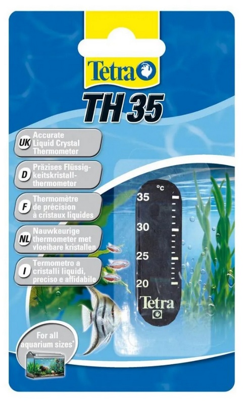 Thermomètre TetraTec TH35 (collé sur verre). Ce modèle précis à cristaux liquides est produit en deux versions. Se fixe à l'extérieur de la vitre de l'aquarium. Mesure avec précision la température de l'eau dans les plages de 20 à 35 °C (modèle TH 35) et de 20 à 30 °C (modèle TH 30). Il se caractérise par des lectures faciles à lire de l'appareil et un design compact et agréable. Le coût recommandé pour les chaînes de magasins est de 377 roubles.