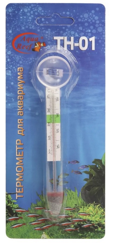 Le thermomètre Aqua Reef est conçu pour mesurer la température de l'eau dans un aquarium. Le corps du produit est en verre de haute qualité. Comme indicateur de température, on utilise de l'alcool mélangé à un colorant rouge. Le thermomètre est fixé à la paroi de l'aquarium sur une surface plane avec une ventouse et doit être immergé dans l'eau sur au moins la moitié de sa longueur. Le coût recommandé pour les chaînes de magasins est de 300 roubles.