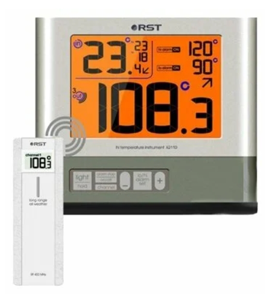 1ère place - pour une unité à fonctionnalité étendue, elle est utilisée dans des pièces à haute température (bains, saunas). L'appareil est équipé d'un capteur externe sans fil, qui est habituel pour de tels appareils, et mesure la température.L'avantage du RST 77110 est la capacité d'émettre un signal sonore lorsque des valeurs extrêmes sont atteintes à l'intérieur, à l'extérieur, cet avantage permet de contrôler le microclimat dans le hammam. RST 77110 a une variété d'applications :