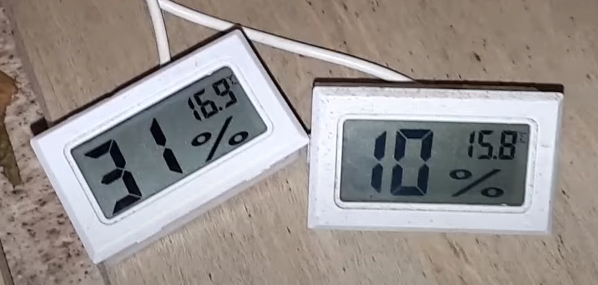 Un autre élément utile est un hygromètre. Il indique l'humidité, qui varie généralement de 10% à 35%, selon la quantité d'eau utilisée dans le générateur de vapeur.