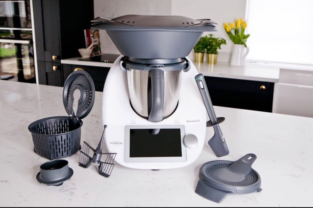 Thermomix TM6 est le dixième modèle de Vorwerk, équipé d'un grand écran tactile, de fonctions de fermentation et de cuisson lente. L'appareil dispose d'un élément chauffant et d'un moteur pour effectuer un certain nombre de fonctions en mode rapide ou lent. De plus, le Thermomix effectue plusieurs tâches en même temps, comme mélanger et émulsionner. Les balances intégrées ont une plage de mesure de 1 g à 3 kg (par incréments de 1 g).