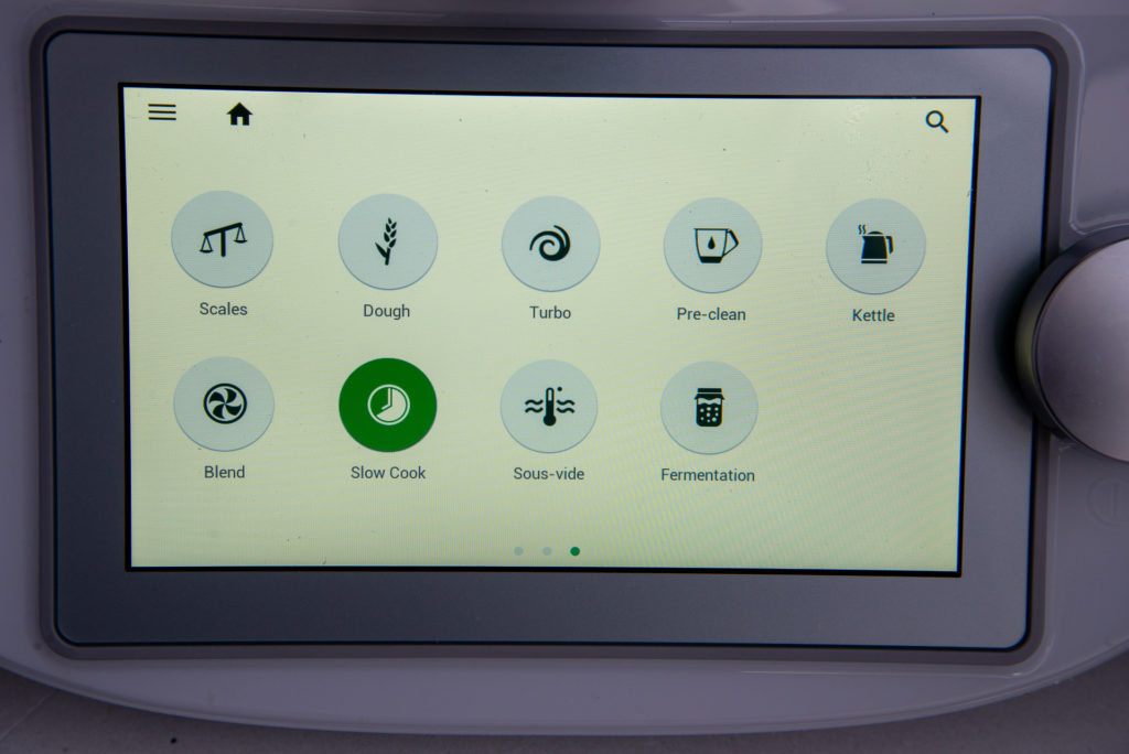 L'innovation du modèle TM 6 est le Wi-Fi intégré, l'intégration avec le service en ligne Cookidoo, qui comprend une énorme base de données de recettes (plus de 50 000 recettes détaillées en couleur) équipée d'une recherche pratique. Avec l'aide du service Cookidoo, vous pouvez collecter vos propres collections de recettes, créer un plan de repas hebdomadaire et créer une liste de courses. Vous pouvez bénéficier de ce service en vous abonnant. De plus, la base de données de recettes est partiellement disponible dans la version mensuelle gratuite. En plus du service Cookidoo, l'appareil contient 200 recettes intégrées.