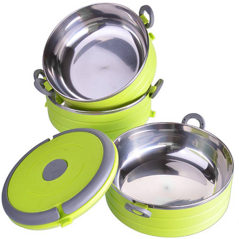 Le thermos en acier garde la chaleur jusqu'à 12 heures. Convient aussi bien aux plats chauds qu'aux plats froids. La capacité de la vaisselle est de 1,3 litre. La particularité du produit est que le flacon se compose de 3 récipients, vous pouvez donc stocker différents types de produits.Le couvercle spécial peut être utilisé comme assiette. Le thermos peut être utilisé sans récipients.