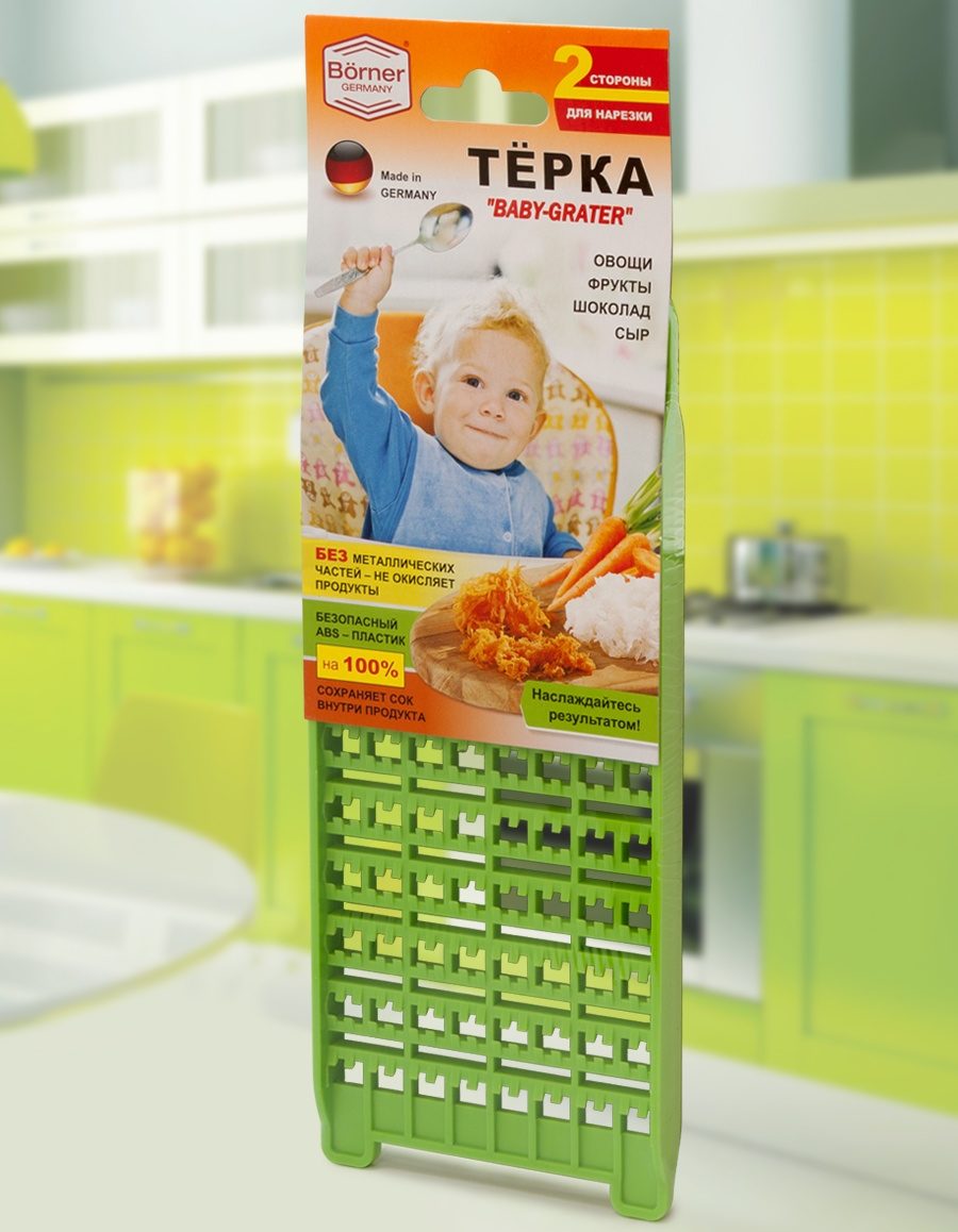 Ainsi, lors du choix, nous prêtons attention à la qualité du métal (plastique), à la résistance des fixations de la poignée - il arrive que la poignée chancelle déjà dans le magasin. Si vous optez pour du plastique, vérifiez qu'il est suffisamment résistant, sans forte odeur désagréable. Il est préférable de prendre des râpes pour préparer les repas des enfants dans les grands magasins, toujours étiquetés, des informations sur la sécurité du matériau sur l'emballage.
