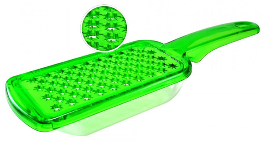 Fabriqué en plastique durable, réalisé sous la forme d'un plateau, il peut être utilisé pour hacher des pommes, du fromage, du gingembre. Avec lui, vous pouvez râper le zeste des agrumes, du chocolat, de la noix de muscade.