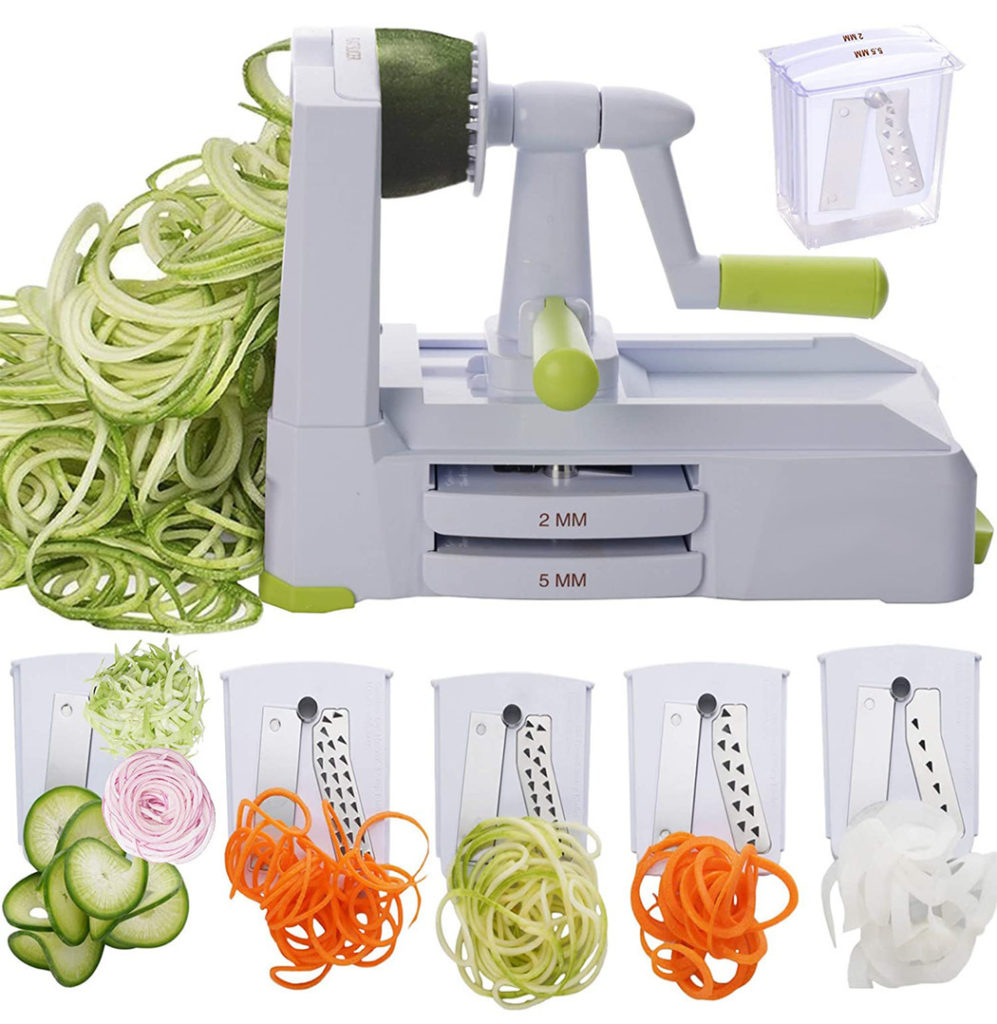 Le spiralizer pour la coupe bouclée est en plastique durable. Grâce à cet appareil, vous pouvez obtenir des spirales ou des "nouilles" à partir de courgettes, carottes, pommes de terre.Grâce aux couteaux tranchants, le processus ne prend que quelques minutes.