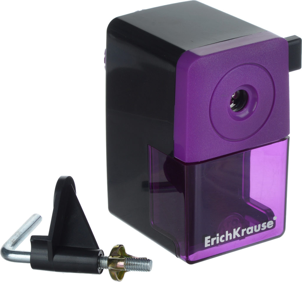 Ce taille-crayon de bureau a une fonction d'alimentation automatique du crayon. Fabriqué en plastique durable, il possède un conteneur à déchets et un trou qui peut être ajusté au diamètre requis - 7 ou 8 mm. Le support de table est inclus.