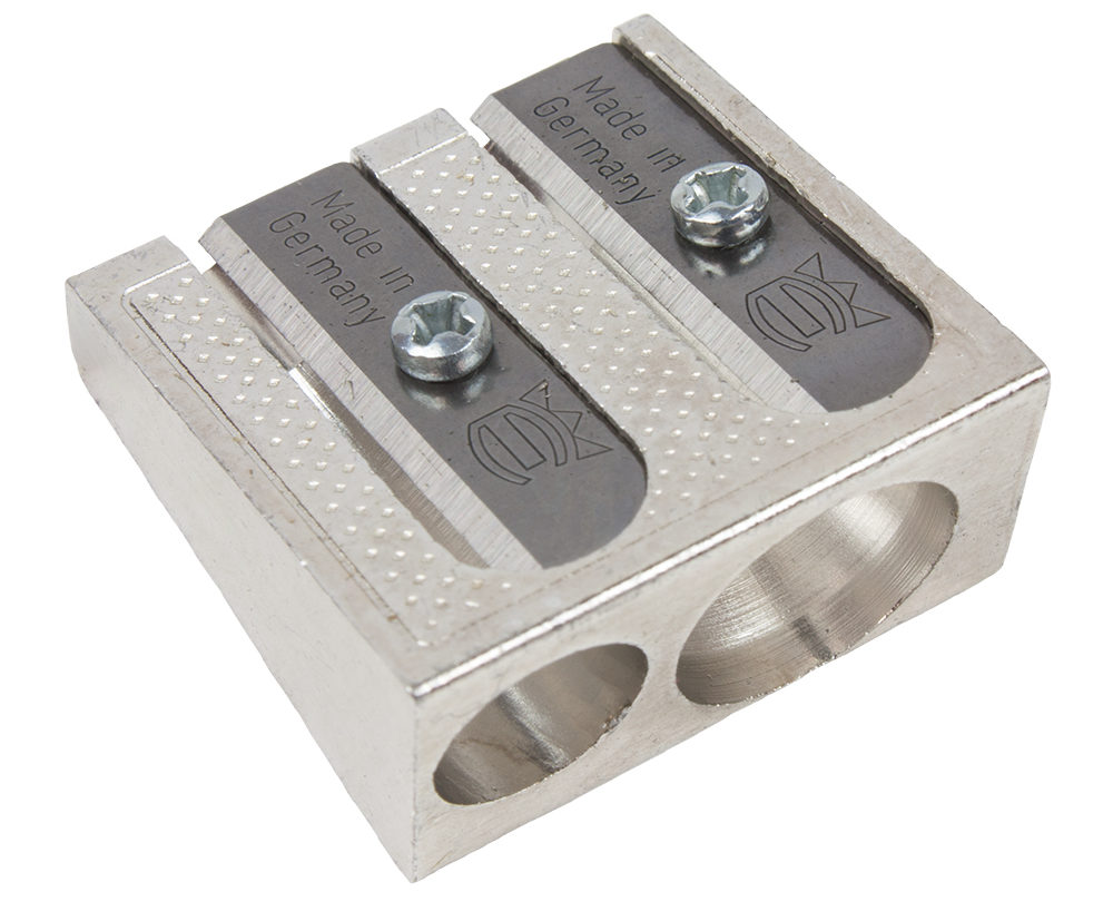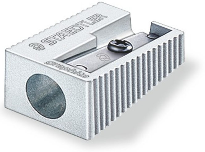 Un taille-crayon simple mais très populaire. Il y a un trou et un récipient.