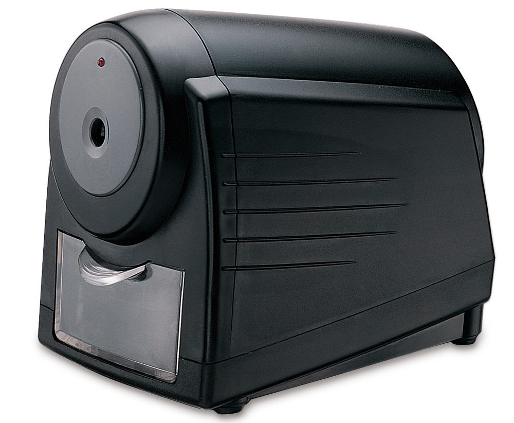 Le taille-crayon électrique de bureau fonctionne sur secteur, dispose d'un conteneur pour les copeaux et d'un trou pour les crayons standard. De plus, il dispose d'un indicateur spécial qui indique le degré d'affûtage.