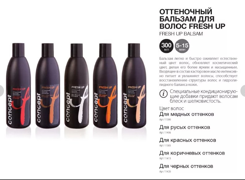 Un baume teinté traditionnel qui n'abîme pas la structure du cheveu. Les huiles incluses dans la composition rendent les cheveux plus lisses et saturés d'humidité. Après la demande, il n'y a pas besoin de fonds supplémentaires. Pas mal tonifie les cheveux naturels, ce qui permet de lisser la bordure des racines repoussées. Il est appliqué sur une tête lavée et vieilli pendant 30 minutes. Une large palette de couleurs vous permet de travailler avec des nuances naturelles, ainsi qu'avec des cheveux décolorés et des cheveux gris.
