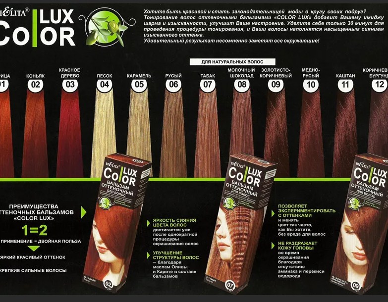 La palette entière est divisée en nombres, dont le premier chiffre signifie la teinte de cheveux initiale recommandée. Si le numéro sur l'emballage est en gras, cela signifie que le baume donne l'effet de la biolamination, qui est cumulatif.