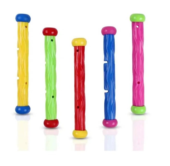 Une autre option inhabituelle pour ceux qui souhaitent avant tout contribuer au développement de leurs enfants, car ils n'ont pas un design aussi amusant que les modèles ci-dessus. Mais d'un autre côté, ces cinq bâtons sont faits de matériaux qui ne contiennent pas de composés chimiques nocifs ni d'allergènes. De plus, le produit revendique sa légèreté et son hygiène. Ayant coulé au fond, les bâtons se tiennent debout et ne flottent pas à la surface. Tous ces avantages du produit contribuent à l'adaptation des enfants jouant avec lui dans le milieu aquatique, simplifient l'apprentissage de l'interaction avec les objets dans l'eau. Les bâtons sont en pvc et coûtent 1190 roubles.