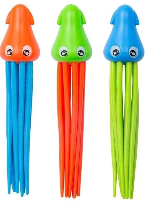 La prochaine offre comprend trois produits, mais cette fois ce sont des calamars colorés. De plus, la combinaison de couleurs dans les produits est très inhabituelle : orange-bleu, vert-rouge, bleu-vert, les couleurs sont gaies, donc ceux qui barboteront avec elles dans la salle de bain l'aimeront sûrement. Le plan de conception de cette proposition est également précieux, ce qui rend son utilisation sûre. Avec ces calmars, vous pourrez passer des heures à vous amuser à explorer les étendues sous-marines d'un bain ou d'une piscine, en les dispersant au fond de laquelle vous pourrez apprendre à votre enfant à naviguer sous l'eau, ainsi qu'à développer sa coordination œil-main. Le produit a une limite d'âge et ne peut être utilisé qu'après avoir atteint l'âge de trois ans. Les calmars pèsent 130 grammes. Ils doivent être stockés et utilisés à des températures supérieures à 0 degrés Celsius. Et ils coûtent 698 roubles.