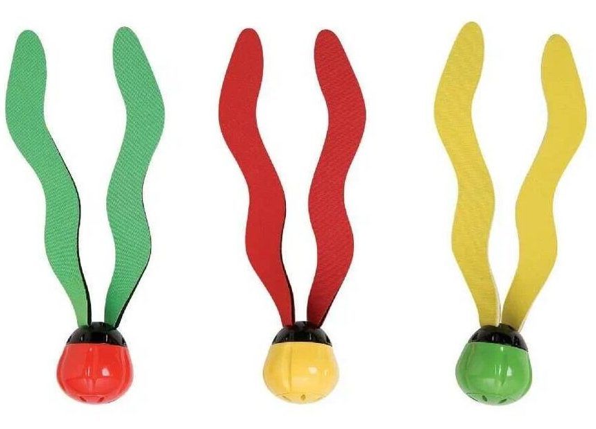Envisagez un autre produit pour les jeux sous-marins. Ce sont des pétales multicolores en matériau léger et doux, tandis que dans la partie inférieure se trouvent des boules de lestage, grâce auxquelles les pétales sont situés verticalement dans l'eau. Il y a trois de ces éléments dans l'ensemble. Mais comment utiliser cet article ? La réponse est simple et banale : comme des algues sous-marines. Vous pouvez les disperser, par exemple, dans une piscine ou dans tout autre plan d'eau fermé, après quoi ils vous aideront à naviguer sous l'eau en fonction de leur emplacement. Vous pouvez également vous entraîner à attraper ces algues. Cependant, il est important de noter que ce produit peut être utilisé après avoir atteint l'âge de six ans. Vous devrez payer 1020 roubles pour cela.