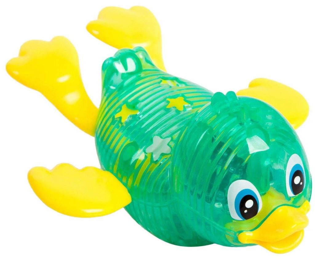 Et le premier produit de cette catégorie est un drôle de canard de la série TM Bondibon "Jouer dans l'eau", spécialement conçu pour les jeux éducatifs. Son corps est translucide, sous l'eau il a une lumière à l'intérieur, ce qui facilite grandement l'orientation sous l'eau. Les nageoires et la bouche, quant à elles, ont une couleur jaune, les plus petits pourront s'amuser de ses grands yeux joyeux. Le corps est en plastique. Le produit nécessite 3 piles AG13, qui sont déjà incluses dans le kit. L'âge minimum pour utiliser une telle chose est de six ans et son prix est de 548 roubles.