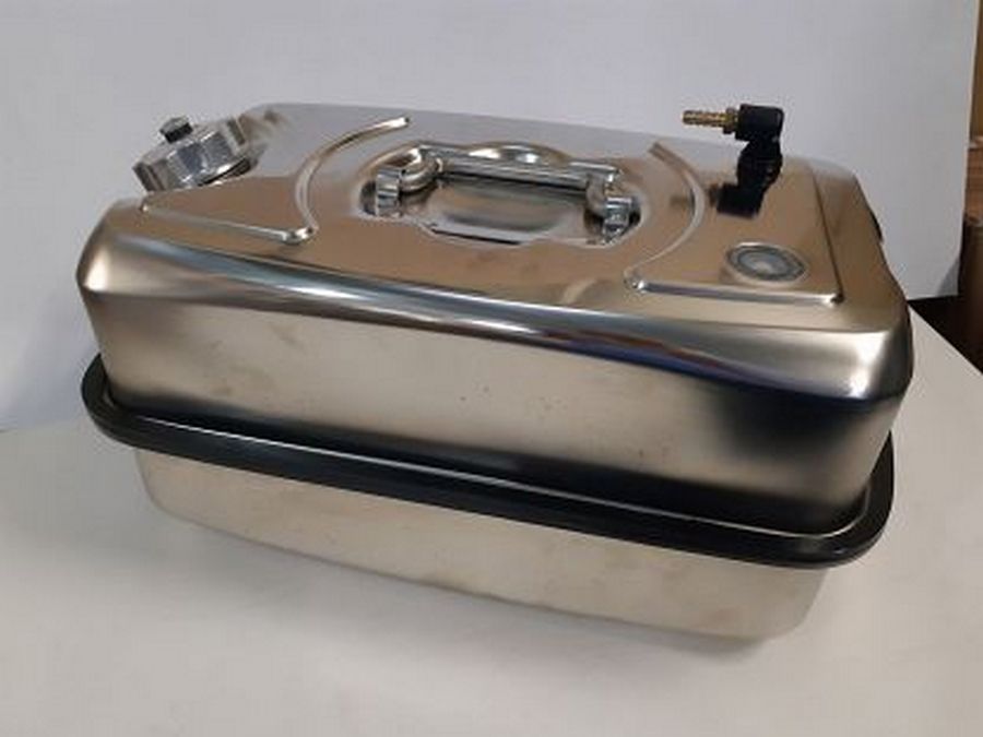 C'est un bon modèle pour les petites voitures. En raison de sa compacité, il peut être placé dans n'importe quelle partie de la voiture. Le corps du réservoir est en acier inoxydable et possède un couvercle à chevrons. Les coutures de raccordement sont protégées par des coussinets en caoutchouc.