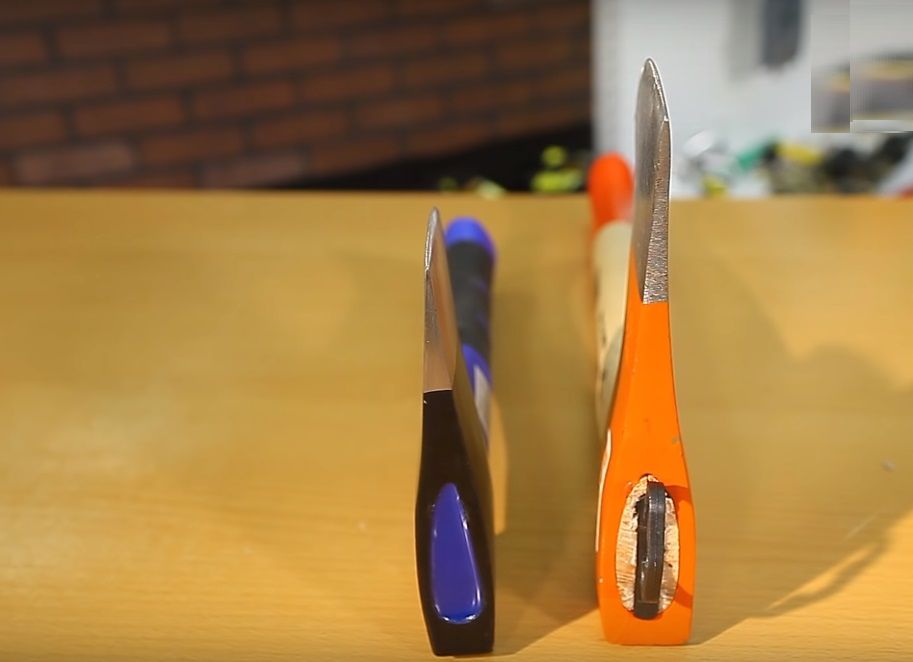 Une option indésirable est les poignées entièrement métalliques. Le plus souvent, ces outils sont livrés avec une poignée caoutchoutée, car sans cet ajout, la hache peut glisser entre vos mains. Mais même avec un tel ajout, l'inconvénient est beaucoup de poids, d'exposition à l'environnement et de recul de la main lors de l'impact.