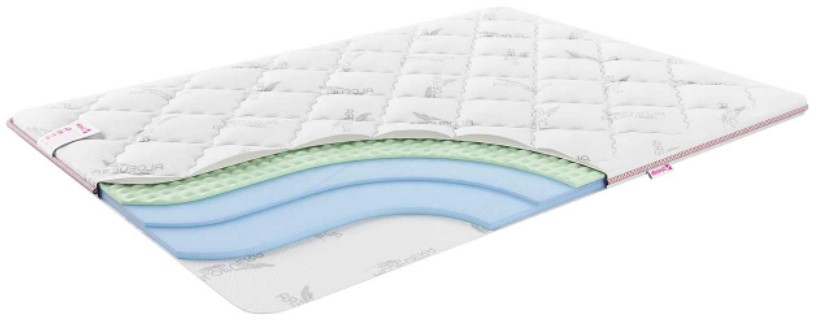 Version orthopédique sans attaches, permet de supprimer les imperfections du lit ou du canapé, pour assurer le confort de sommeil des enfants et des adultes. Charge maximale : 80 kg. Dimensions : 60x130x5 cm La housse est en polycoton, a une couleur délicate et douce et un design attrayant. Prix : 4066 roubles.