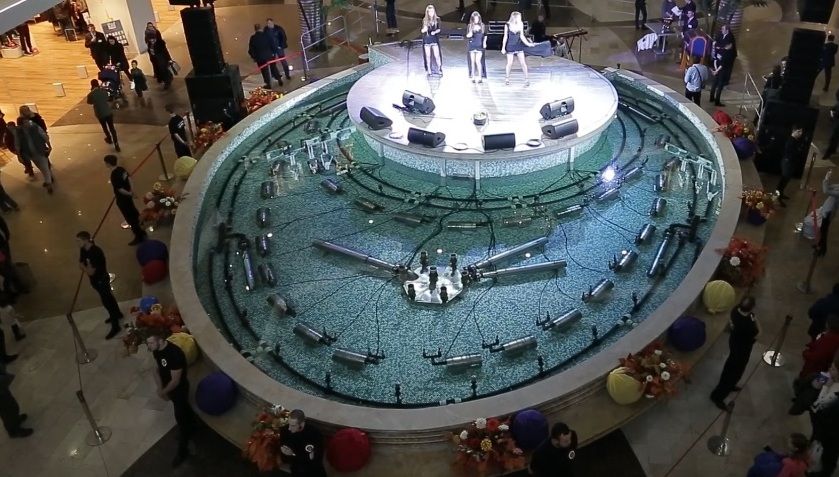 Un endroit où aller en famille. Le bâtiment est sur trois étages, comprend des boutiques, un cinéma, un bowling, un club de fitness, des cafés et des restaurants et bien plus encore. Le zeste et la fierté du bâtiment sont une scène de concert professionnelle, où les pop stars russes se produisent souvent entourées d'une fontaine programmable originale. La façade du bâtiment est équipée d'un immense écran LED RVB, où sont diffusés d'importants événements russes et internationaux. Pour un débutant, afin de trouver le bon magasin, vous pouvez acheter les inserts du centre et voir sur la carte où il se trouve, ce qui permet de gagner du temps sur la recherche.
