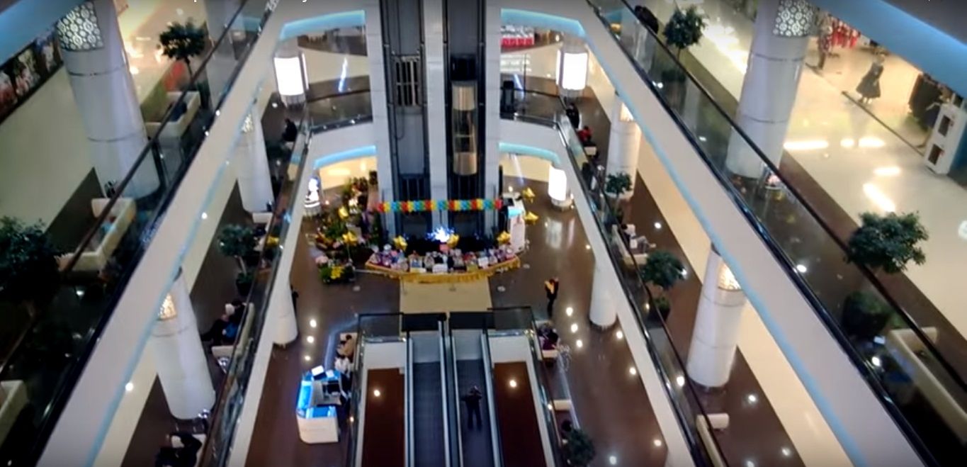 L'espace de vente occupe quatre étages, il est pratique de se déplacer entre eux sur un grand ascenseur panoramique ou un escalator. Pour le confort des visiteurs, la quasi-totalité d'entre elles sont équipées de panneaux d'information dont la plupart sont tactiles. Avec leur aide, vous pouvez facilement et rapidement trouver le magasin souhaité.