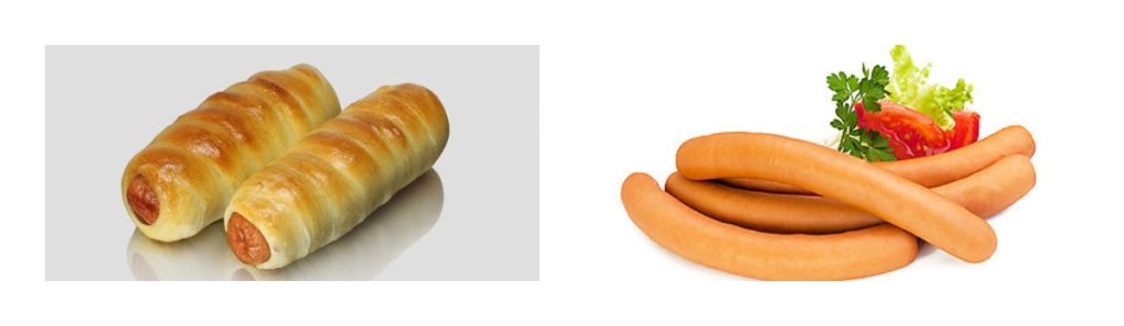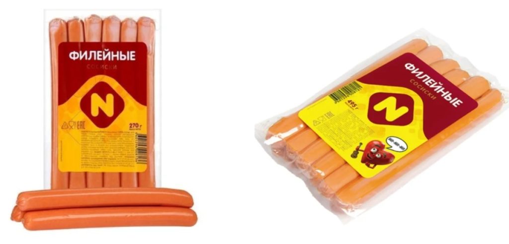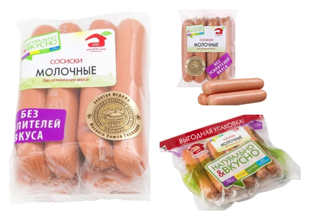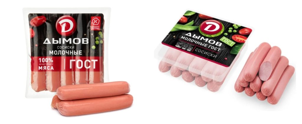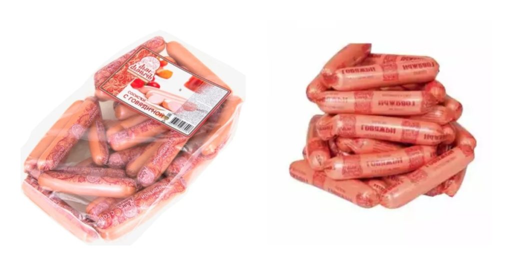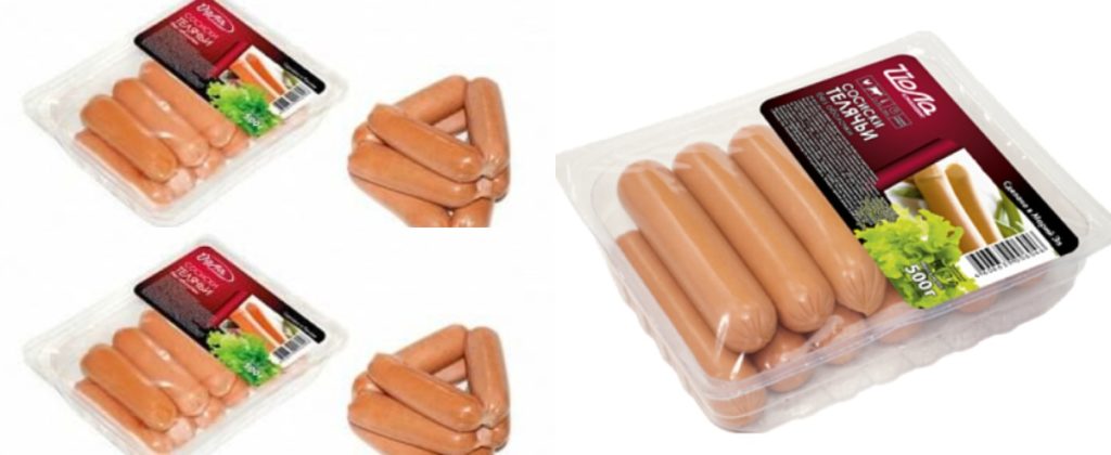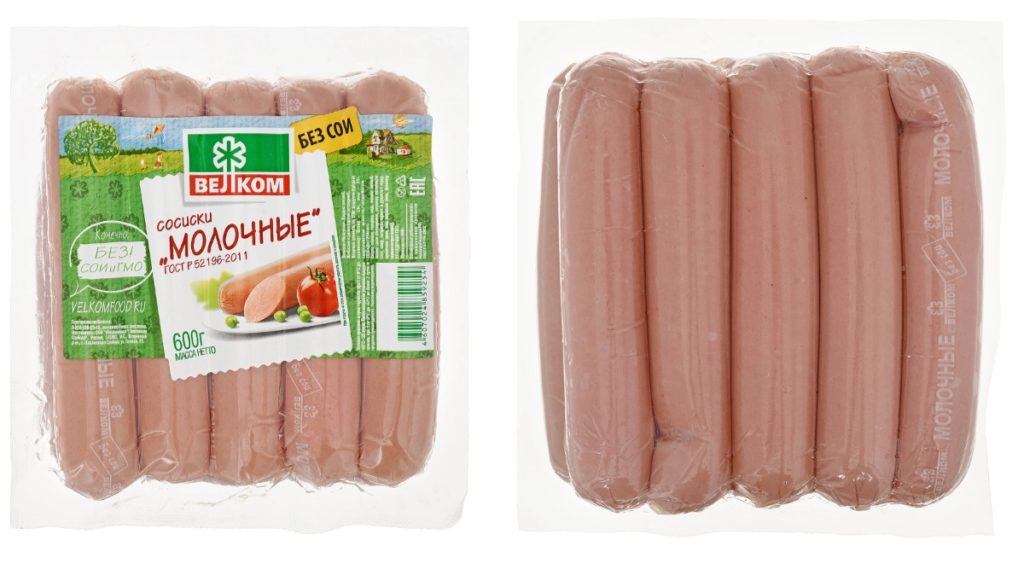 Extérieurement dense, dodu, dans une coque appétissante de couleur rose. Chaque article est également emballé séparément. L'emballage doit être retiré avant la cuisson. Ils se distinguent par une agréable odeur de fumée et de viandes fumées.