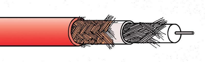 Ces consommables triaxiaux peuvent être réalisés avec un fil central toronné ou plein protégé par un double blindage. Il est à noter que l'écran externe, outre la fonction de protection, peut également réaliser les fonctions de transmission de signaux de multiplexage individuels.Une telle structure de la ligne commune suppose qu'il n'est pas nécessaire de poser séparément une ligne spéciale vers le récepteur pour transmettre le texte du téléprompteur, émettre des commandes vers des équipements séparés, et même une simple alimentation de secours.