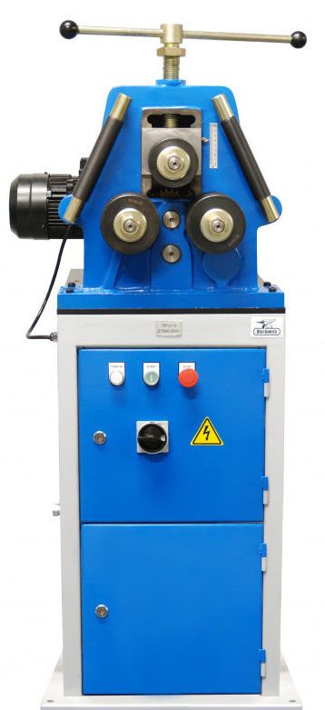 La cintreuse est commandée par des pédales. Il est pratique que les mains de l'opérateur soient libres et qu'il puisse facilement changer les pièces, changer les bords ou les angles en déplacement pour donner la forme souhaitée. La machine est placée verticalement. Il n'a pas besoin d'être fixé sur le lieu de travail, il est absolument indépendant. Le déplacement se fait manuellement. Il y a deux boutons d'arrêt pour un arrêt immédiat. L'un d'eux est situé sur le support et l'autre directement sur le boîtier.