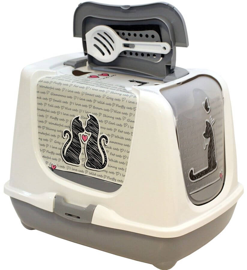 Ici, nous avons affaire à un fabricant italien. Conçu pour être utilisé comme toilette pour les grands félins. Ou adapté à une option telle que plusieurs chats. Deux pièces démontées contribuent à une maintenance simplifiée. Le couvercle lui-même contient un filtre pour réduire les odeurs désagréables.