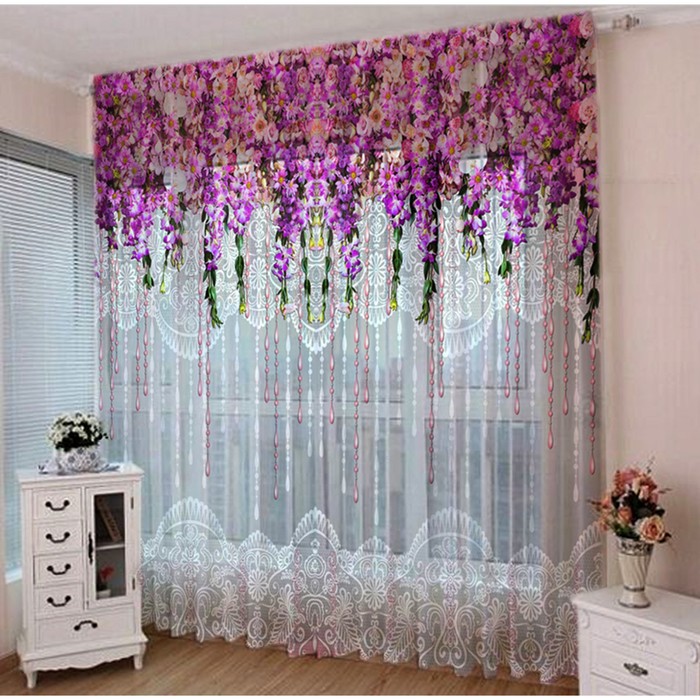 Les tulles courts vous permettent d'utiliser le rebord de la fenêtre sans craindre de gâcher le matériau. Le modèle est sans prétention dans les soins, résistant aux taches et aux crochets. Motif : fleurs. Dimensions : 165 x 170 cm Tissu : jacquard. Prix moyen : 503 roubles.