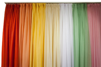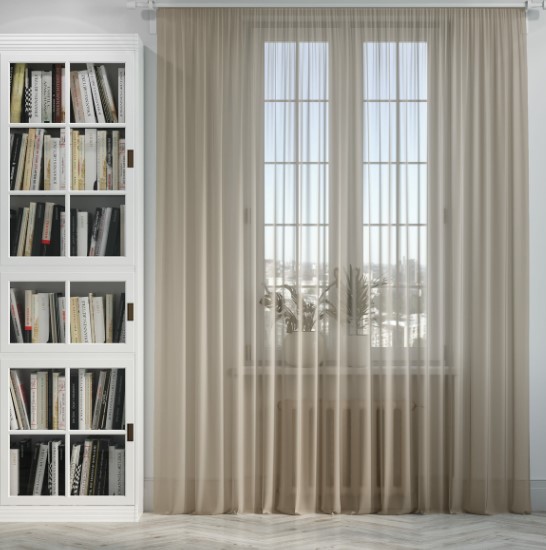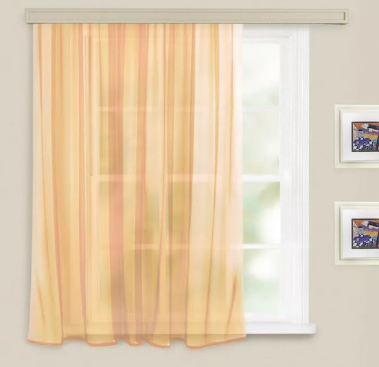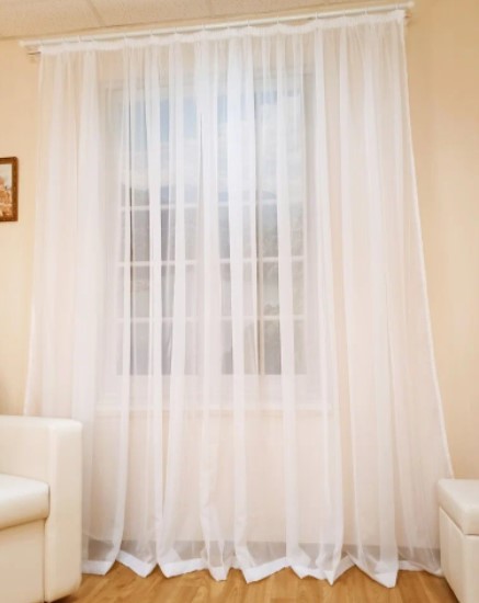 Le modèle transparent en polyester dense transmet bien les rayons du soleil. Densité : 45 gr/m². Dimensions : 145x260 cm Pas de motif ni d'imprimé. Vous pouvez choisir n'importe quelle nuance pour l'intérieur de l'appartement.La fixation avec du ruban adhésif élimine l'affaissement et les plis. Prix moyen : 544 roubles.
