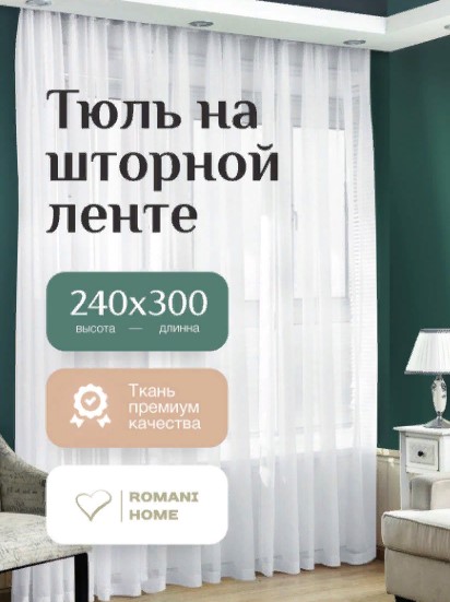 Tulle moderne, le matériau est transparent, léger, résistant à l'usure. Le ruban de rideau vous permet de le tirer dans de beaux plis. Peut être utilisé seul ou avec des rideaux. Ne pas blanchir ou laver à des températures supérieures à 30 degrés. Prix : 845 roubles.