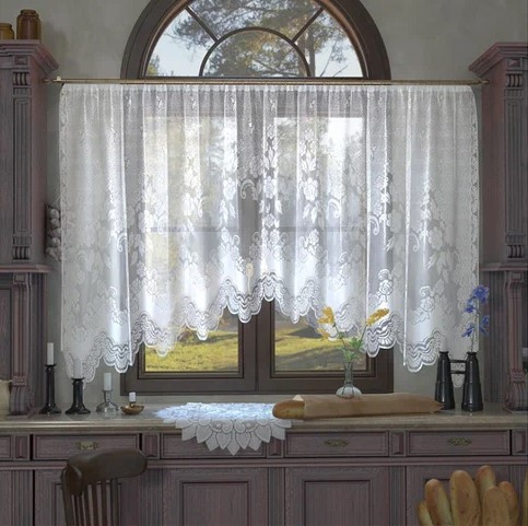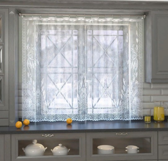 Le fabricant propose des options économiques pour la décoration de la cuisine. Le modèle est présenté en différentes couleurs. Vous pouvez acheter les deux dans un magasin ordinaire et commander directement auprès du fabricant. Lors d'un achat via Internet, comparez la photo du tulle sur le site avec la marchandise livrée. Coût : 390 roubles.