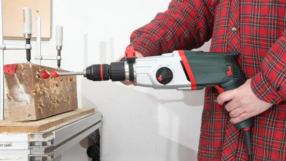 Modèle professionnel à deux vitesses pour percer des trous dans divers matériaux, ainsi que pour mélanger et tordre. Le mandrin à clé maintient solidement l'outillage. Une perceuse coincée est facilement retirée en utilisant le mode inverse. La taille exacte du trou est définie par la jauge de profondeur.