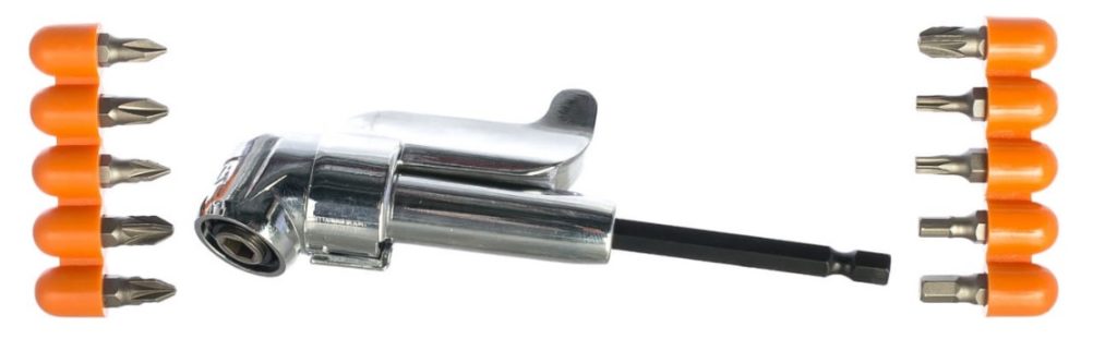 Juste le luminaire d'angle parfait d'une marque de renommée mondiale. Peut être utilisé non seulement avec des visseuses et des tournevis, mais également adapté aux perceuses. Conçu pour fonctionner avec un couple allant jusqu'à 14 Newtons par mètre. Tord et dévisse parfaitement les vis dans les endroits très difficiles d'accès. Le corps et les engrenages internes sont en acier spécialement trempé. Le support magnétique a six faces et est conçu pour une taille de 0,25 pouces. Il y a un levier d'arrêt de doigt pivotant à 360 degrés. Le pays d'origine est l'Allemagne. Le coût établi pour les magasins de détail est de 1600 roubles.