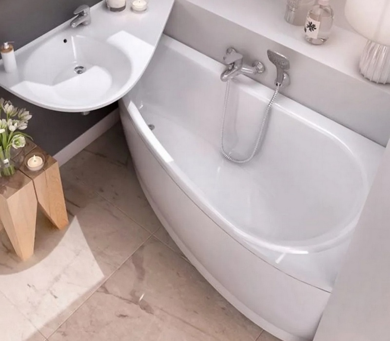 Ce motif asymétrique offrira beaucoup d'espace pour le bain et la douche sans prendre beaucoup de place. Installée dans un angle, elle n'a pas la même longueur et largeur que les modèles d'angle standard, mais se situe entre une baignoire d'angle et une baignoire rectangulaire.Les tailles vont de 75 cm de large à 140 cm de long. C'est pourquoi il convient au placement dans de petites pièces. Le coût recommandé pour les chaînes de magasins est de 48 000 roubles.